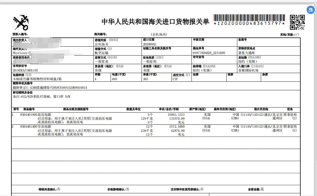 高壓電流美國(guó)進(jìn)口空運(yùn)